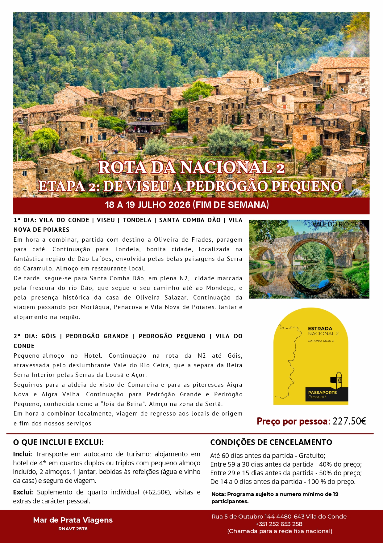 NOTA: Programa sujeito a numero mínimo de 19 participantes
