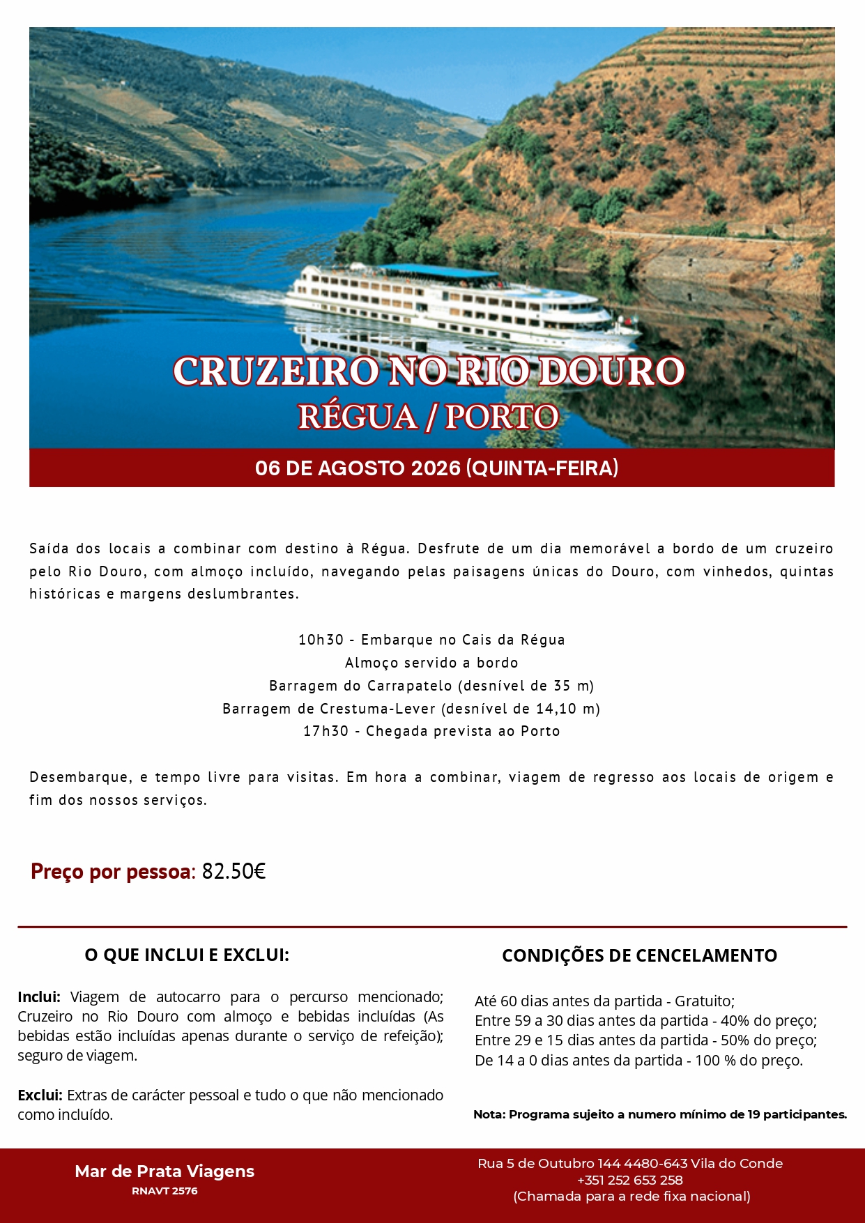NOTA: Programa sujeito a numero mínimo de 19 participantes